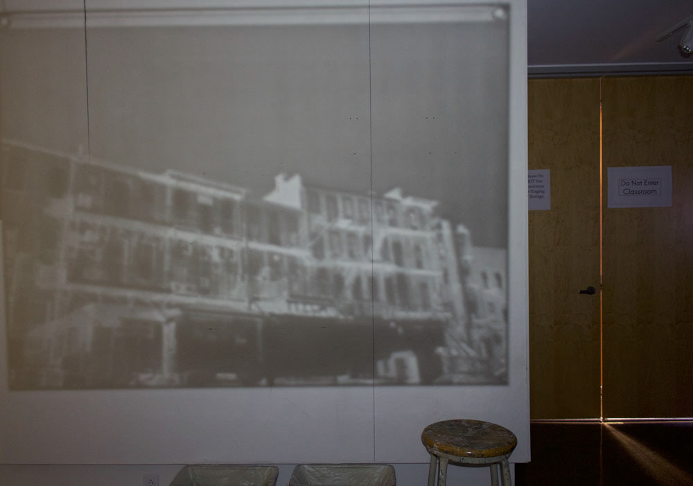 The most challenging aspect of this project was deciding on the images I would use. After a few tests I was really drawn to the images of architecture, but what architecture would I engrave? I have always been interested in the differences between the back of town buildings versus the front especially in Northampton, MA. I find the store fronts along Main Street are very colorful and vibrant while the back of the buildings are very worn and broken down. I thought about documenting and comparing these differences, but found myself to be more interested in what I documented when exploring the side streets and alleyways. Because I felt that these projections seemed to make a dramatic space, I felt that by printing the “hidden” areas of Northampton, MA and having them be projected would somehow reveal these areas to viewers.