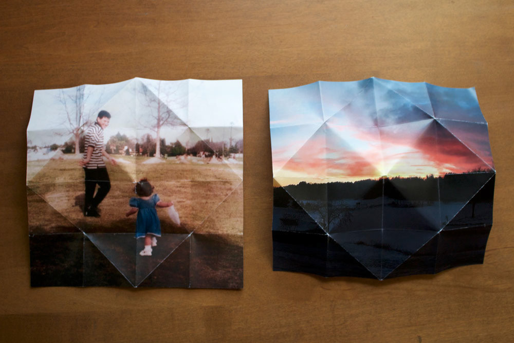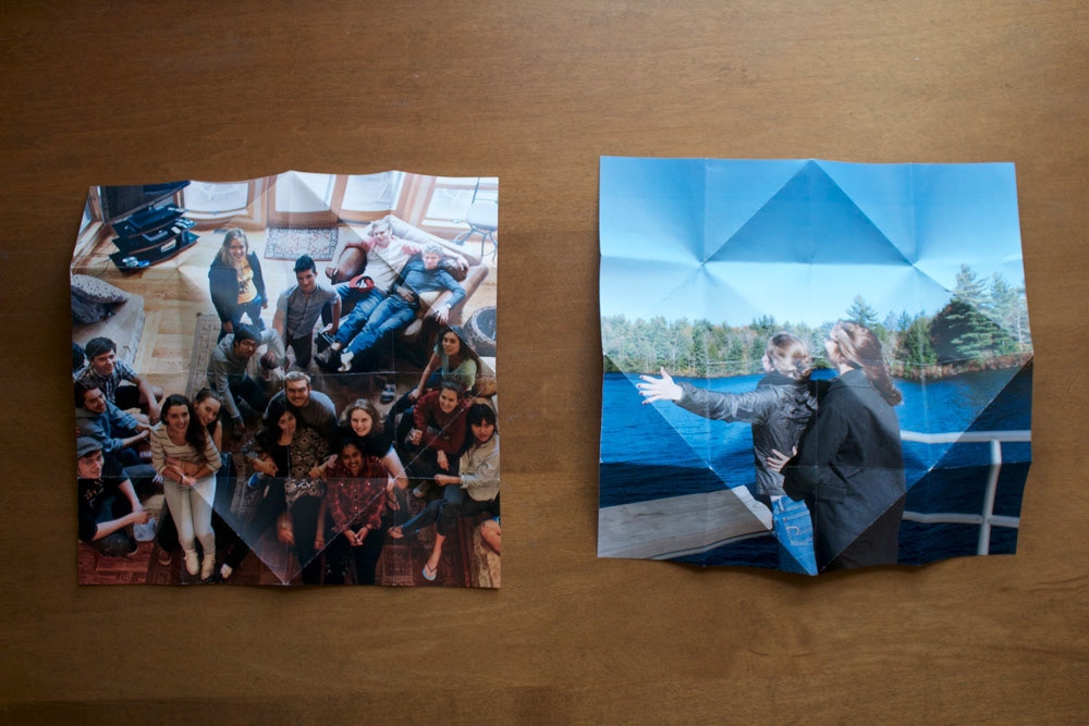 When thinking about a photograph as an object I immediately considered taking an image and turning it into something else that was interactive. I first thought about folding photographs into paper airplanes, allowing viewers to see how the act of folding distorted an image and allowing them to actually fly the photographs through the air. However, I felt that the folds of the plane did not change or distort the image enough. I then tried folding photographs into fortunetellers and I really loved how these folds segmented the image. On the outside there were four separate and abstract images, but once you began to unfold the fortuneteller more information was revealed. However, I felt that there needed to be a connection between the photographs printed and the fortunetellers.
